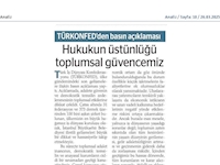 TÜRKONFED 24 Mart 2025 Basın Açıklaması: "Hukukun üstünlüğü toplumsal güvencemizdir."