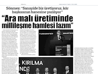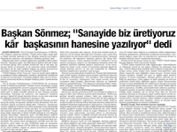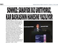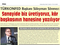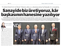TÜRKONFED Başkanı Süleyman Sönmez: “Sanayide biz üretiyoruz, kâr başkasının hanesine yazılıyor”