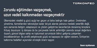 Türk İş Dünyası Konfederasyonu (TÜRKONFED), dört yıllık zorunlu lise eğitimi süresinin kısaltılmasına yönelik tartışmalara ilişkin basın açıklaması yaptı. Bu yaklaşımın Türkiye’nin...
